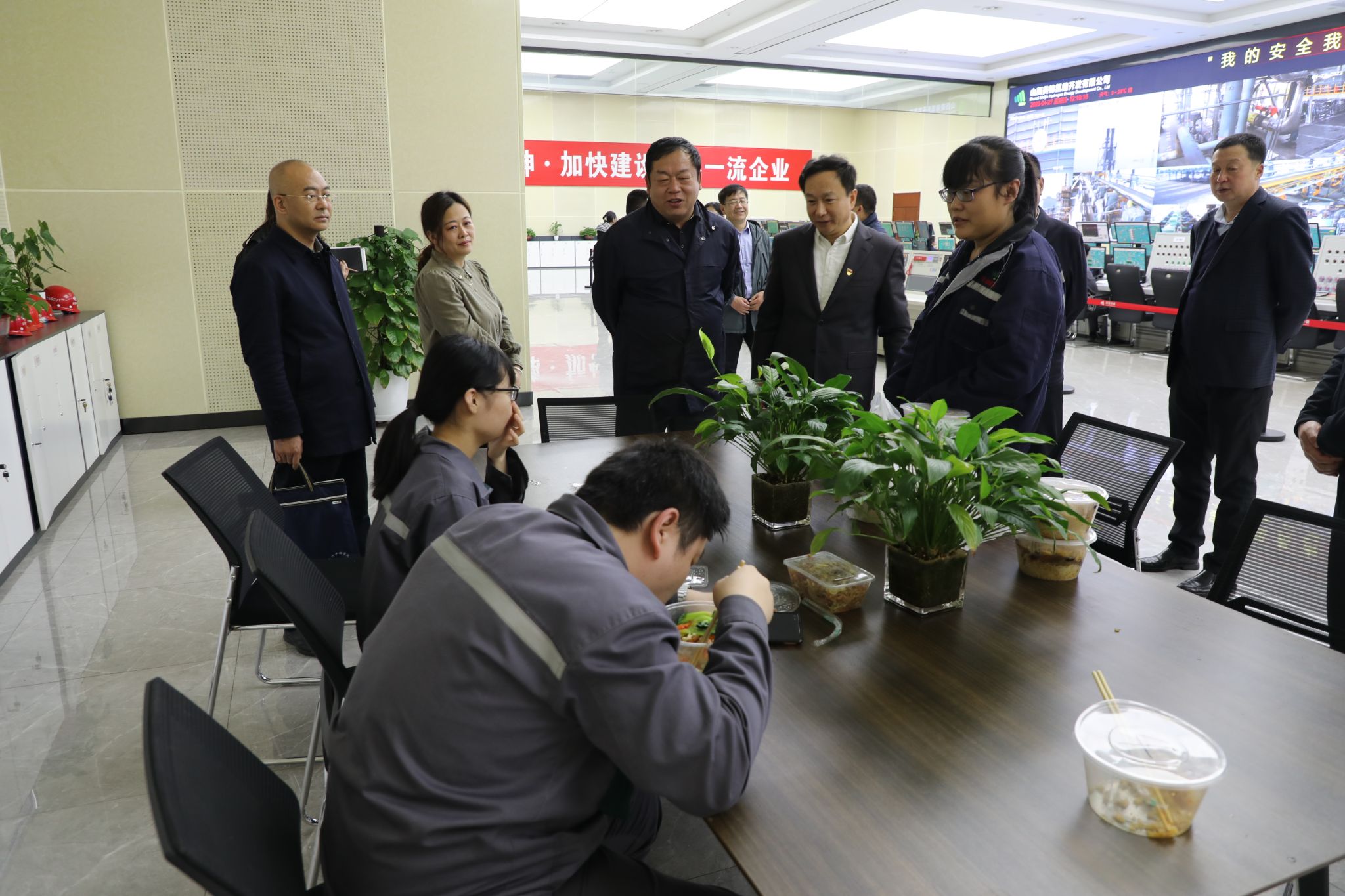 之后,雷书记一行在美锦能源股份有限公司总经理等人的陪同下,前往清徐精细化工循环产业园山西美锦华盛化工新材料有限公司实地调研。雷书记详细了解“煤焦气化氢”五大板块循环生产技术和工艺流程,氢能项目建设布局,“制储运加”开发利用、工艺流程,氢能全产业链安全监控数据平台、氢能中控平台运行情况;并与企业员工进行了深入的交流,详细了解他们的工作生活情况,生产管理岗位所需专业背景、技术技能及岗位从业规格标准等情况。