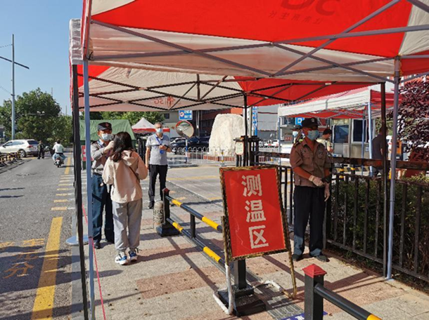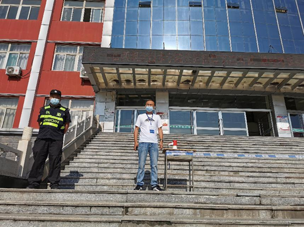 考试当天,各保卫人员恪尽职守,认真负责,按时到岗到位,始终保持良好的精神状态和严谨的工作作风,提醒考生佩戴口罩,对每一位进校考生都要核对健康码、检查行程轨迹、测量体温和比对身份信息,做到了全员检、无遗漏,确保进校人员必须符合学院疫情防控要求。