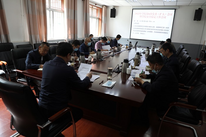 5月20日下午,学院党委书记雷承锋主持召开2022年第六次党委(扩大)会议暨安全稳定工作专题 会议。在校党委委员、各校区党工委书记以及相关部门负责人参加会议。