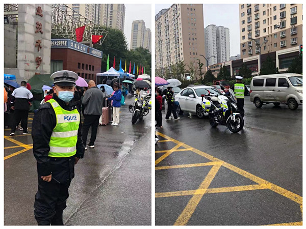 保卫部积极与交警部门取得联系,在校门口组织人员配合交警进行疏导,引导随行家长车辆即停即走,确保交通井然有序。