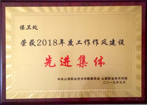 保卫处荣获2018年度“工作作风建设”先进集体称号。