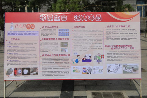 今年是第27个国际禁毒日,为进一步加强禁毒教育活动,使广大学生认清毒品的危害,养成健康的生活情趣,增强防毒拒毒意识和社会责任感,确保“校园无毒品,学生不涉毒”,在2014年“6.26”国际禁毒日到来之际,学院宣传部联合院团委、院保卫处等部门,采用条幅、海报、电影、签名等活动形式在全院范围内对广大师生、员工进行以“珍爱生命,远离毒品,实现伟大复兴中国梦,建设和谐美丽校园”为主题的宣传活动。