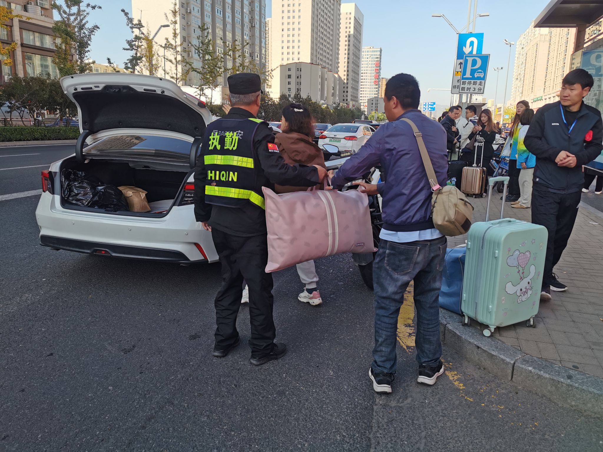 巡逻巡查,暖心服务。安保人员增加巡逻频次,保卫部工作人员依分工到各区域巡查,关注可疑人员,清理闲杂人员,制止不当行为;帮助学生搬运行李,给新生及家长指路;对捡拾的行李箱、身份证等失物,第一时间联系失主,物归原主,耐心回复家长咨询,展示学院良好形象,用心用情用力解决新生实际问题,切切实实为学生排忧解难,有力保障秋季开学报到工作。