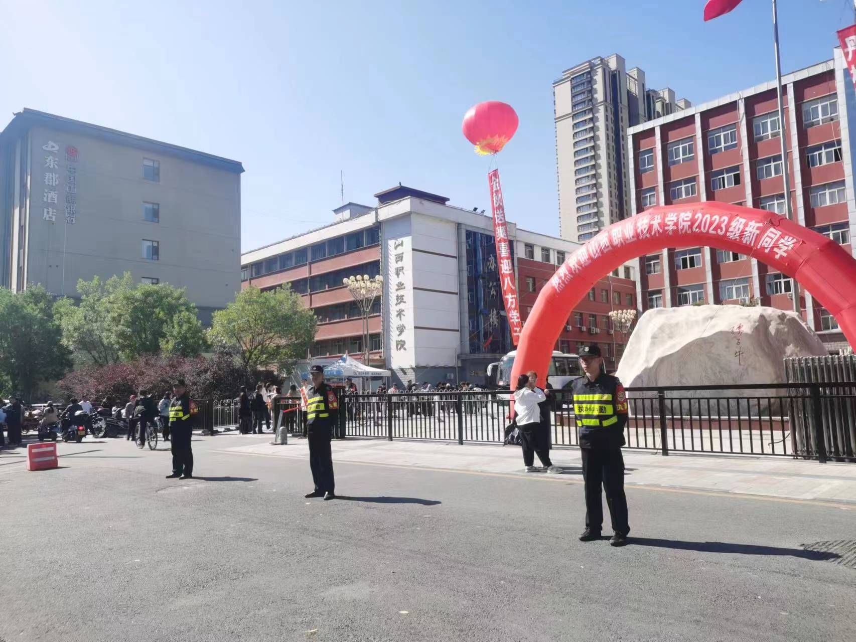 提前研判,精心部署。针对新生入学,到校车辆和人数大幅增加的实际情况,保卫部提前研判,召开部务会研究制定《2023年迎新安全保卫工作方案》。并积极联系、协调属地派出所、交警等部门请求支持与帮助,属地派出所、交警部门派专人与保卫部安保人员相互配合,及时疏导乱停乱放车辆,清理校园周边游商小贩,保障了迎新期间校园治安管理、交通秩序安全稳定。