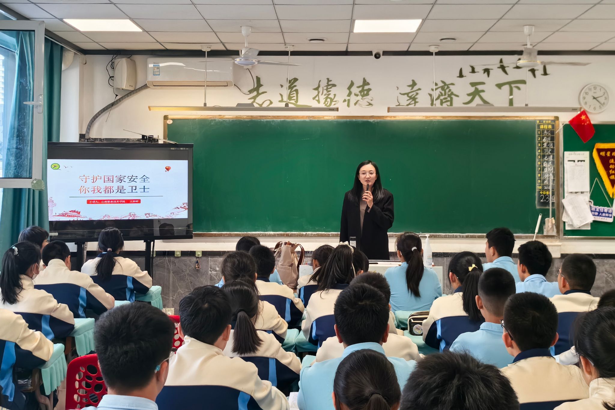 4月14日下午,在山西省志达中学182班的教室,学院思想政治理论教学研究部王妙婷副教授以“守护国家安全 你我都是卫士”为题,用知识抢答开启了精彩一课。随后王老师通过网络间谍窃密、非法测绘等典型案例,揭示危害国家安全行为的隐蔽性与严重性,让学生明白国家安全并非抽象概念,而是与每个人的生活紧密相连。最后现场组织了问答竞赛,踊跃的抢答和颁发的小奖品将本次宣讲推向了高潮,也进一步增强学生们对总体国家安全的认识,引导学生理解“国家安全人人有责”的深刻内涵。