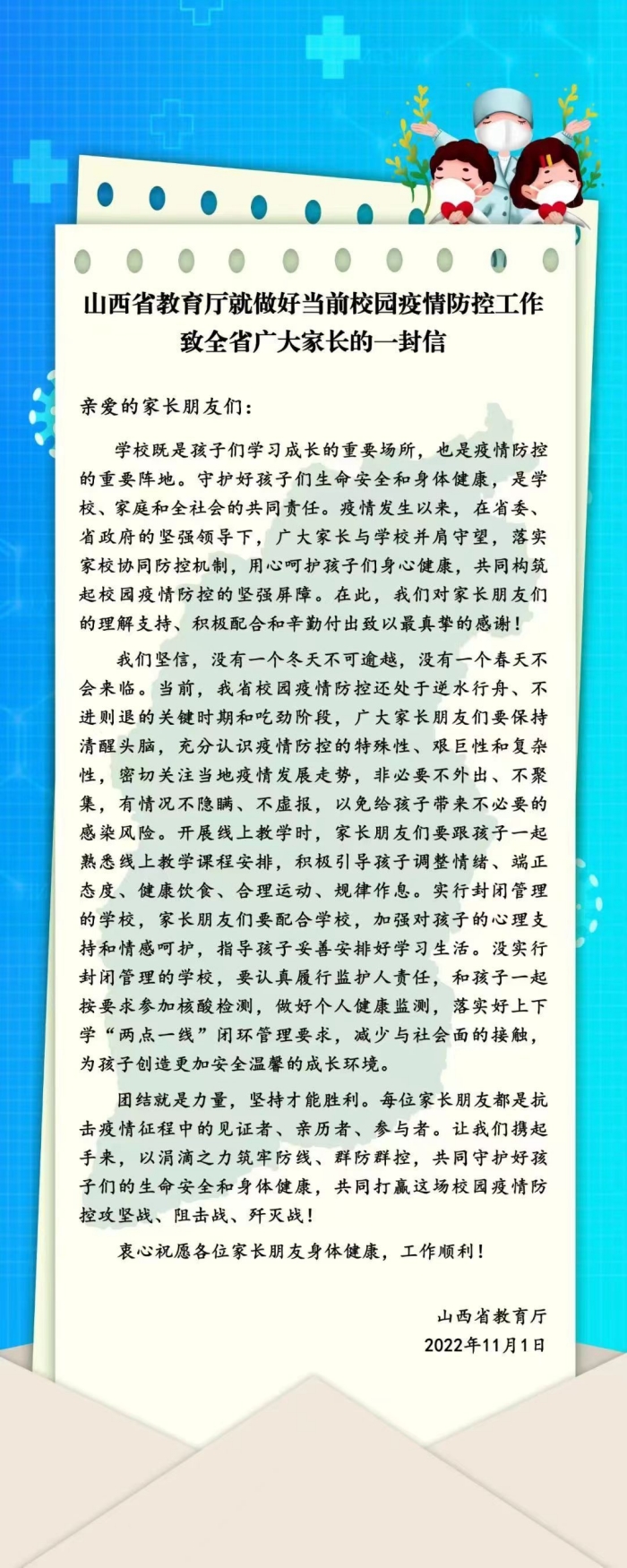 山西省教育厅就做好当前校园疫情防控工作致全省广大家长的一封信