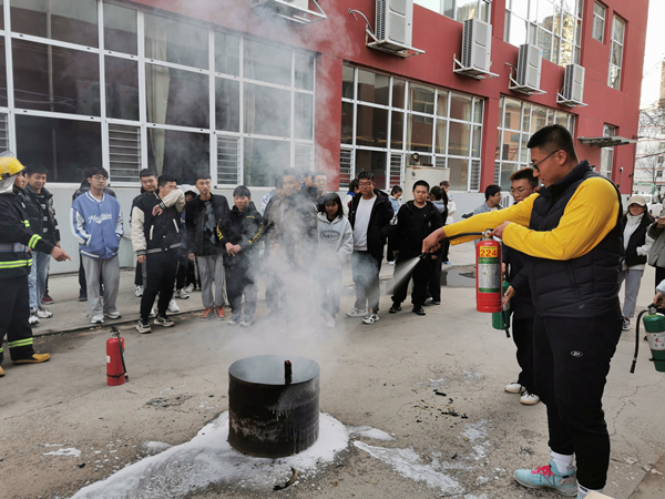师生进行灭火实操演练