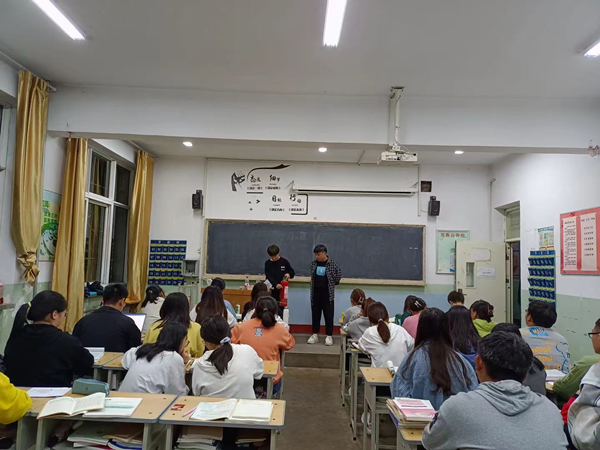 各班安全员讲解灭火器的操作使用