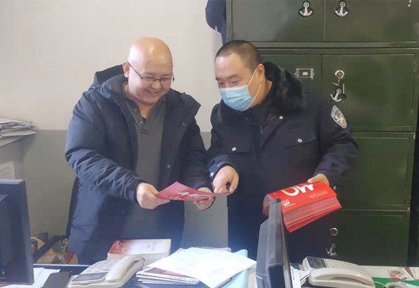 发放“119”消防宣传月安全知识传单现场