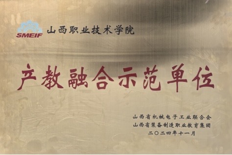 山西省工业经济联合会会长白秀平和山西机电职业技术学院党委书记邸峰向开云官网及其他12家单位颁发了“产教融合示范单位”牌匾。
