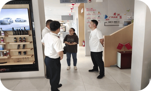 在党总支副书记杨杰和副主任杜红的带领下,首先来到与我系有深度校企合作的理想汽车直营店,参观了理想汽车直营店的零售展厅、接待区、维修车间等区域,了解了其运营模式和发展状况,并与理想汽车相关负责人进行了深入的沟通交流。