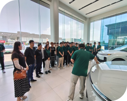 随后,我系以教研室为单位分组,分别对园区内捷途、传祺、吉利、长城、丰田、特斯拉等品牌新能源汽车4S店进行了拓岗洽谈,经过与各4S店深入沟通交流后,部分4S店表示愿意与我系在汽车销售、前台接待、汽车维修等方面进行相关合作,为我系实习生及毕业生提供一定数量的岗位。