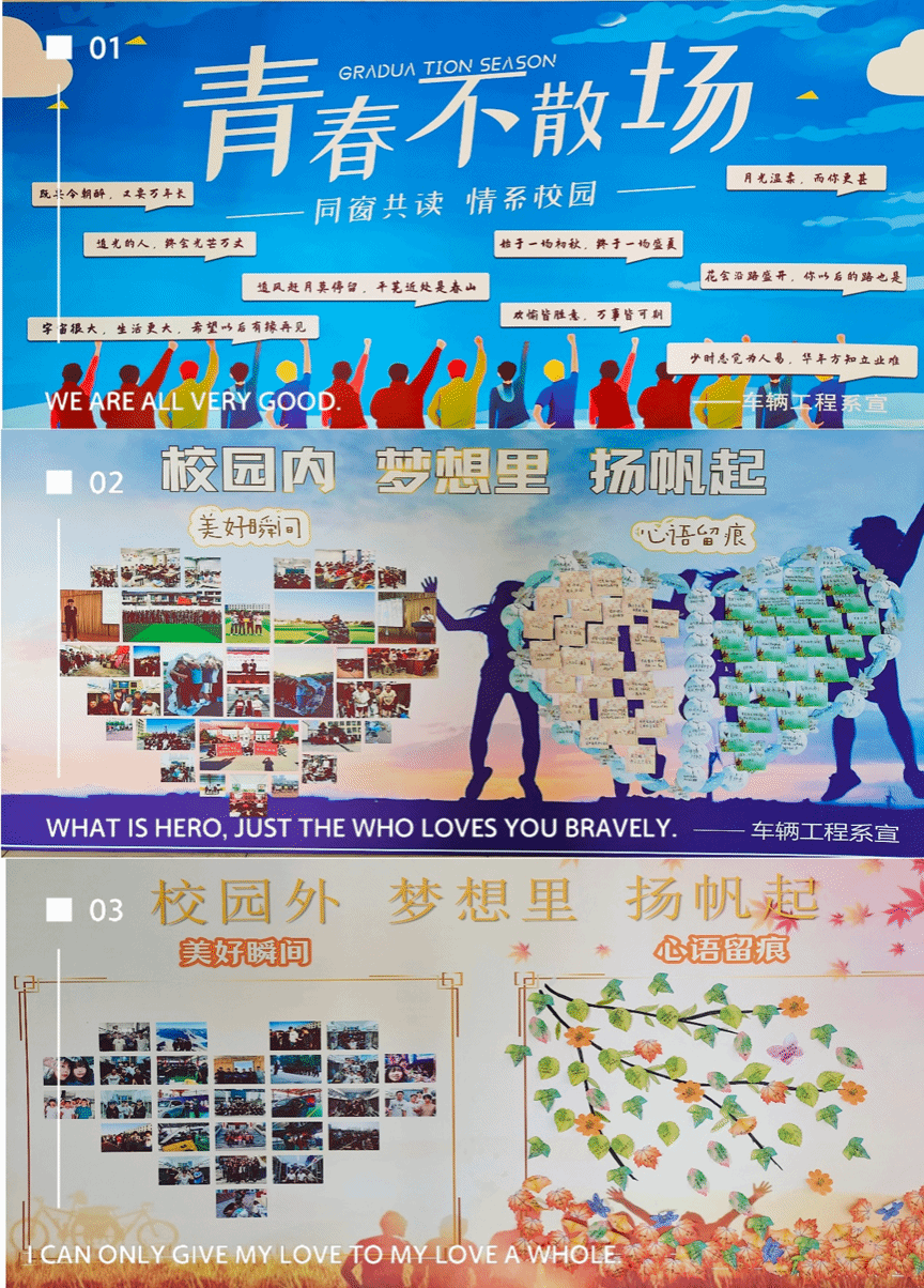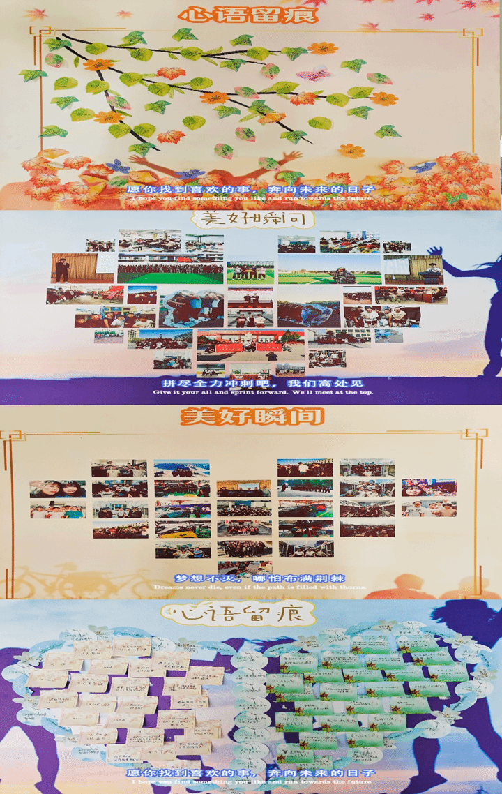 照片里的一抹抹笑容、一个个拼搏努力的身影、荣耀时刻的定格、日常生活的小小仪式感都被用影像记录下来,呈现出难忘的时刻,同学们瞬间陷入流年的漩涡,一幕幕如胶片般滚动。展板上的祝福如落叶漫天飞舞,有的表达了对母校的眷恋和感激之情,有的寄托了对未来的憧憬和期待,还有的则是对同窗好友的不舍和祝福。这些留言汇聚成一幅幅温馨而感人的画面,无不彰显同学们丰富多彩的内心世界和对未来的无限憧憬。