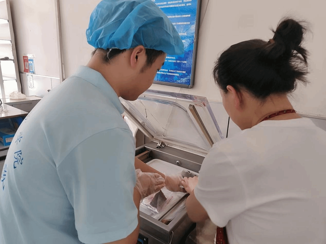 驴肉一直以来都以其鲜嫩的口感和丰富的营养而闻名。很巧的是,南关村也有这样一家远近闻名的驴肉加工作坊,于是我们在村党委副书记王书记的带领下共同参观了二宝驴肉工作坊,了解了驴肉的选材、腌制、煮制等制作工艺。驴肉作为当地的特色美食,有着悠久的历史和独特的制作方法。为了能够更加深入的体验,我们还参与到了驴肉后期的售、称、真空压缩等等过程,直到把新鲜美味的驴肉送到顾客手里。