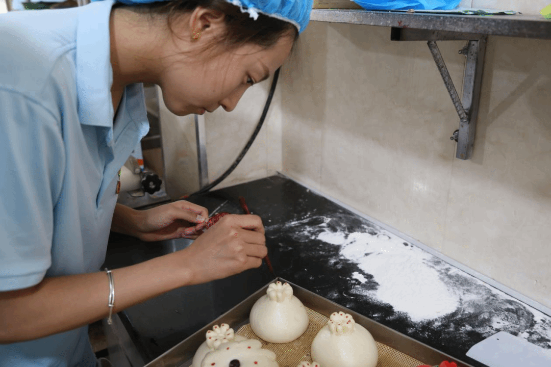 首先,我们来到了二宝花馍作坊,拜访了当地著名的花馍传承人李改燕女士。李老师为我们大家指导揉、搓、捏、剪的诀窍,在老师的热情鼓励和精心指导下,同学们积极参与,认真制作,活动结束后,大家纷纷展示自己的杰作。我们还了解到,花馍不仅是一种美食,更是一种表达祝福和吉祥的文化符号。