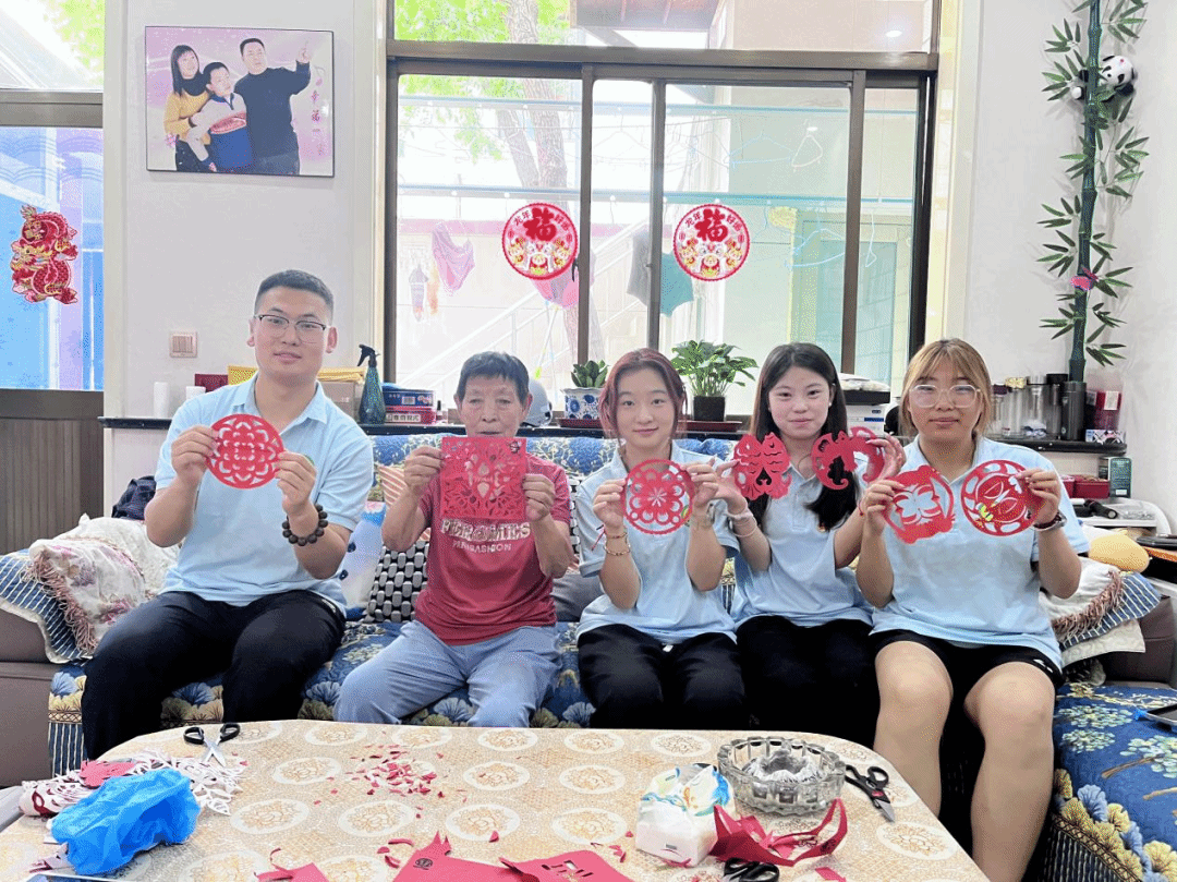 清晨我们跟随村干部前往南关村居民区,寻访非遗传承人,体验剪纸技艺。来到剪纸艺人家中,奶奶手握剪刀,一边聊着天一边行云流水地剪着,我们看到奶奶精巧的手法下埋藏着对剪纸技艺的热爱,在奶奶的手上,剪纸仿佛焕发出了新的生命力。在奶奶家中,同学们不仅学到剪纸技巧,更认识到剪纸每一刀一划都凝聚着匠人的心血与智慧,彰显出中华优秀传统文化和人文情怀的无穷魅力与强大生命力。