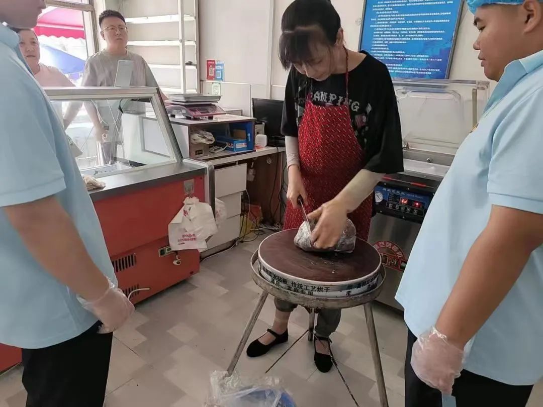 7月18日,实践团队在南关村开展了一次非遗美食的探寻之旅。团队成员首先来到了区级非物质文化遗产的二宝花馍作坊,与传承人和当地村民一起制作了花膜,期间我们了解到花馍不仅是一种美食,更是一种表达祝福和吉祥的文化符号。之后我们参观了二宝驴肉加工坊,并参与到了驴肉后期的售、称、真空压缩等等过程。中午我们品尝了当地特色小吃桃花面。下午,我们在榆次古城的巧手线编工作室,见到了非遗传承人马素萍,她向我们展示了线编的基本技法和创作过程。今日宣讲团于南关村广场宣讲中国非遗文化,强调其重要价值,呼吁众人肩负保护传承责任,让非遗文化发扬光大。