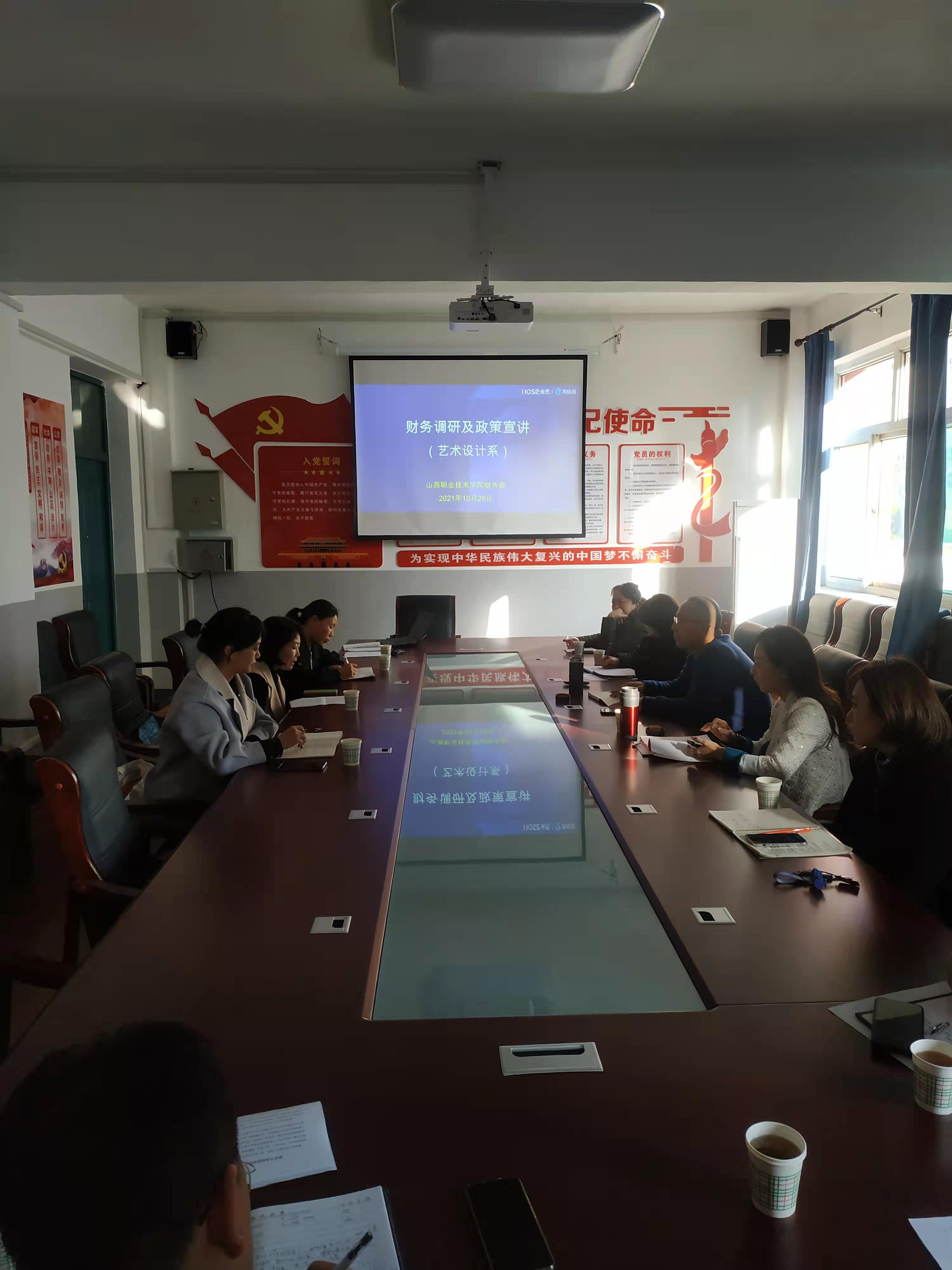 2021年10月26日下午3点,财务处业务骨干一行5人赴艺术设计系进行财务调研及政策宣讲。艺术设计系班子成员、财务经办人、课题负责人、辅导员代表及部分老师参加会议。