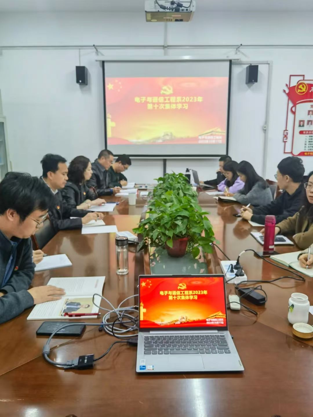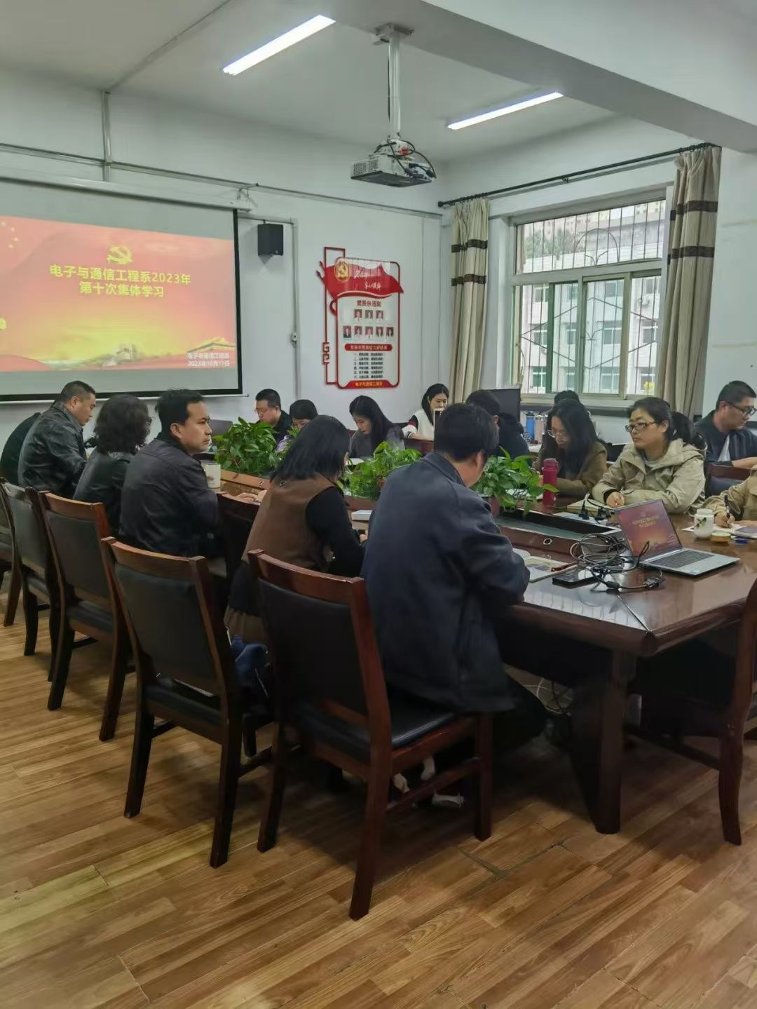 电子与通信工程系党总支于10月17日下午召开2023年第十次政治理论集体学习会议,会议由刘娟同志主持,电子与通信工程系全体教师和数字产业学院教师党员参加。