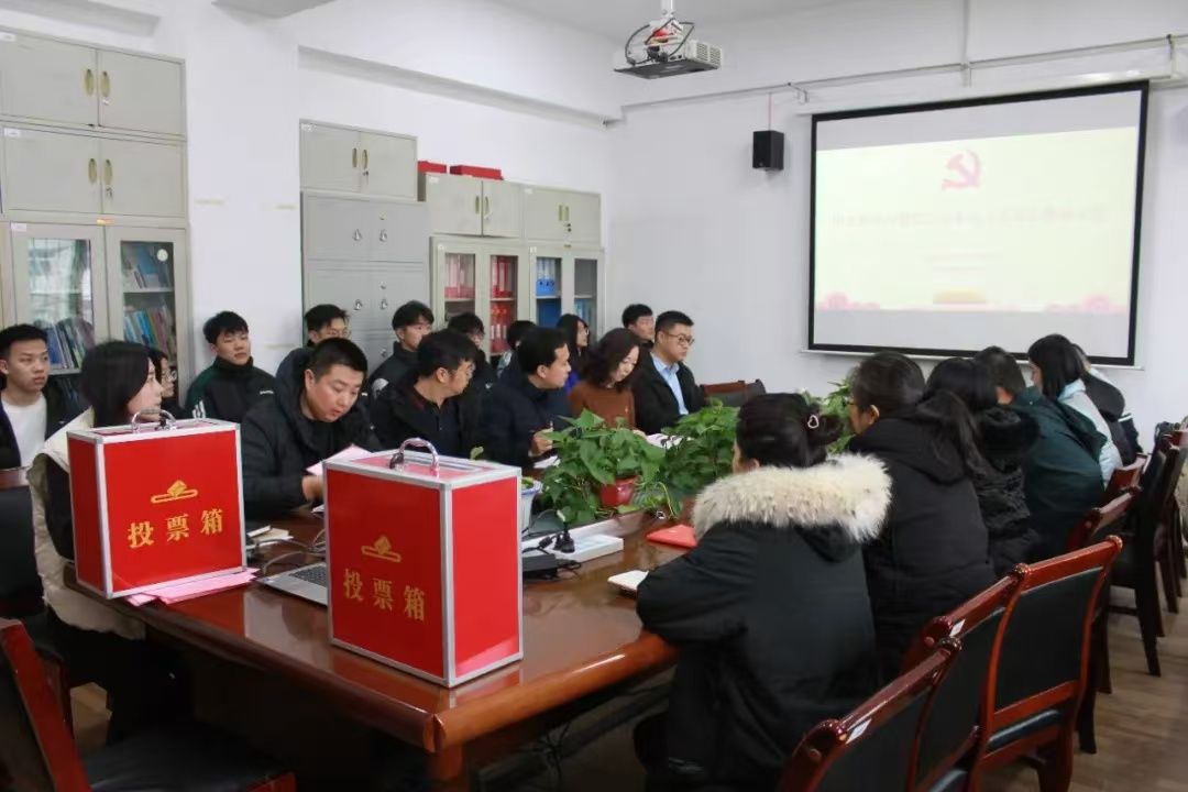 会上,电子与通信工程系党总支副书记(主持工作)刘娟对党总支的工作情况进行报告,报告全面总结了十年来党总支开展的工作、取得的成绩及存在的不足,并提出了下一步工作建议,会议审议并通过了党总支工作报告。随后,会议严格按照《中国共产党章程》《中国共产基层党组织选举工作条例》《中国共产党普通高等学校基层组织工作条例》和《中共开云kaiyun官方网站委员会基层党组织设置和换届工作实施方案》有关规定和换届选举程序要求,表决通过了候选人名单、监票人、计票人名单,在充分酝酿的基础上,采用无记名投票方式差额选举产生了新一届党总支委员会委员5名,选举产生党总支委员会主持工作的副书记1名、副书记2名。