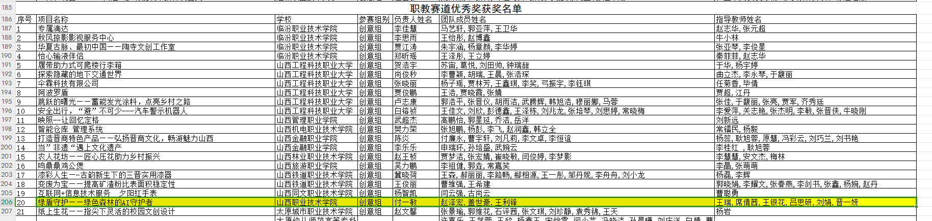 数字技术产业学院王银花,席倩茜老师共同带领付一敏等同学参赛的《绿盾守护——绿色森林的AI守护者》获职教赛道创意组优秀奖。