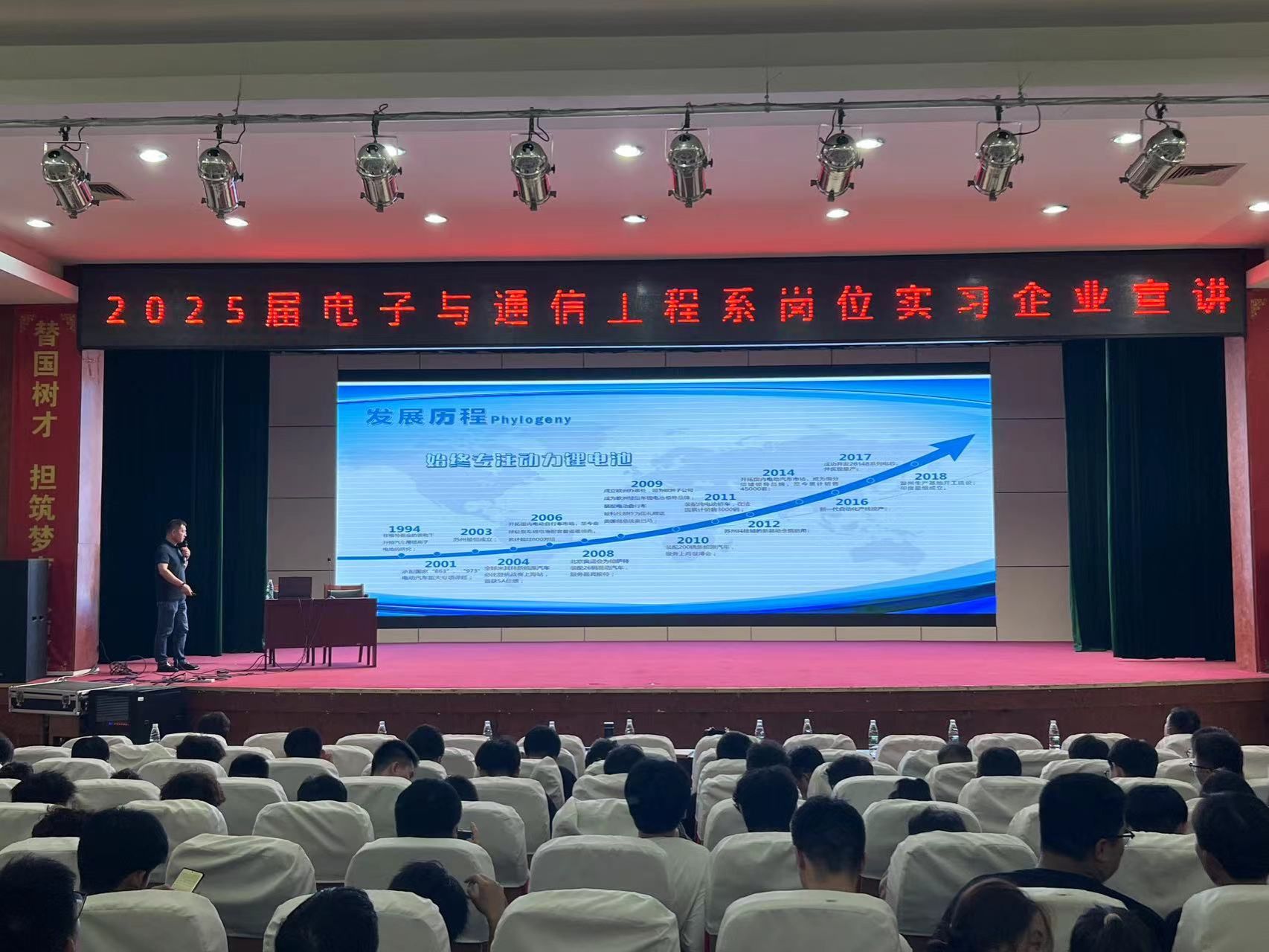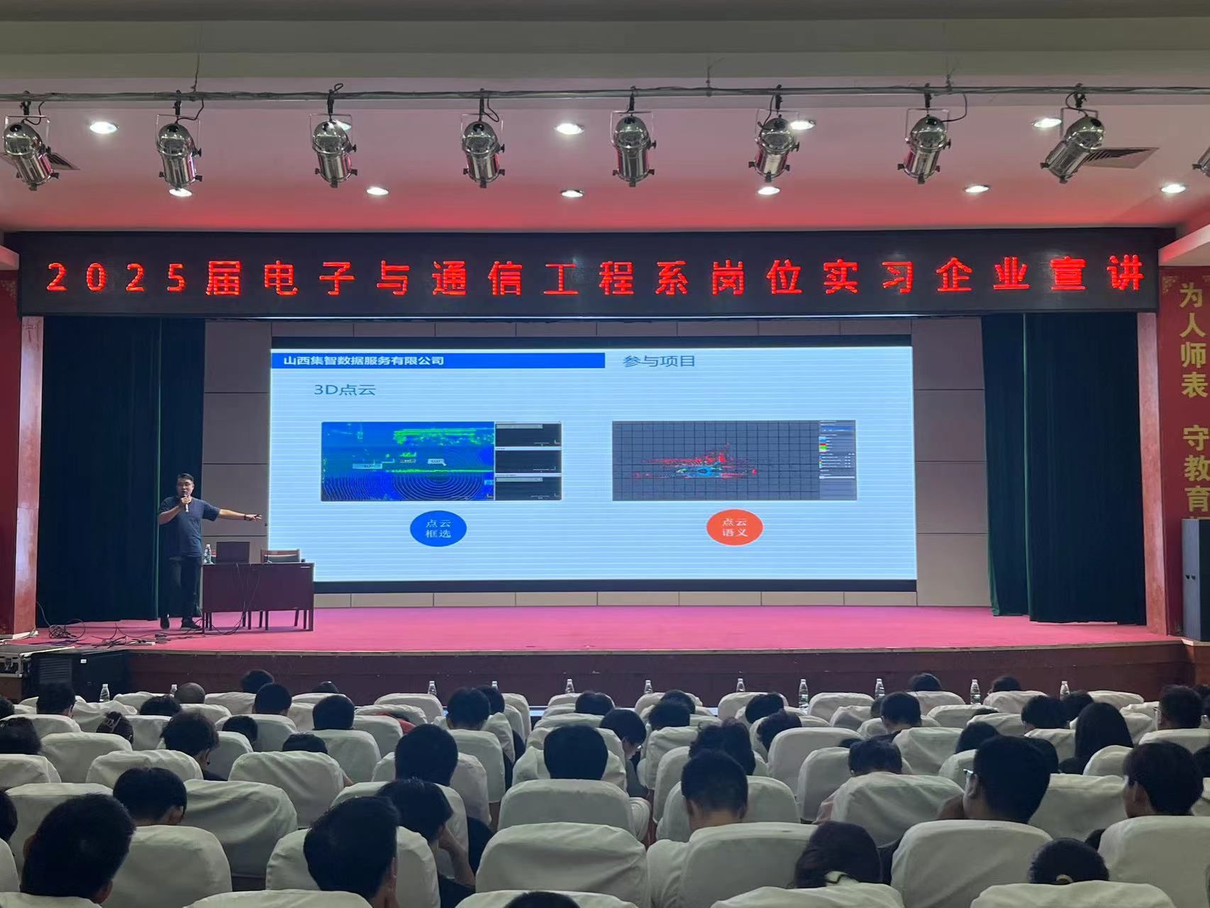 为全面提高人才培养质量,提升学生就业竞争力,9月18日晚上,电子与通信工程系-数字技术产业学院邀请博浩科技有限公司,宁波华讯通信服务有限公司,南京宁翰通信系统有限公司等20家企业于长风校区报告厅举行2025届毕业生企业宣讲会。电子与通信工程系党总支书记刘娟,系主任王瑞,副书记刘俊,副主任刘永锋,数字技术产业学院副院长吕思研与2025届全体学生参加大会,会议由校企合作专业学生代表丁馨怡主持。