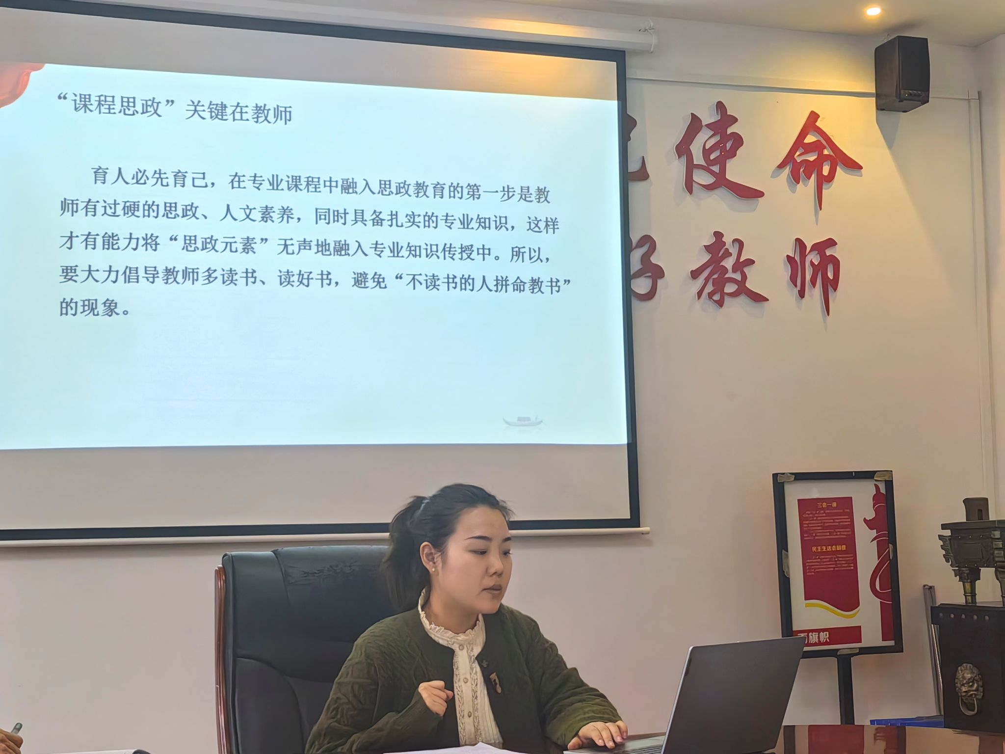 现代通信技术专业主任白雅婷以“实现课程思政润物无声的效果,恰当方法是保障”为主题,围绕参加校级教学能力比赛的经验心得进行交流分享。课程思政关键在教师,梳理专业课程知识点,提炼思政元素需要能力;将思政元素融入知识点,让学生理解、接受需要方法,时刻保持“课程门门有思政,教师人人讲育人”的良好氛围。