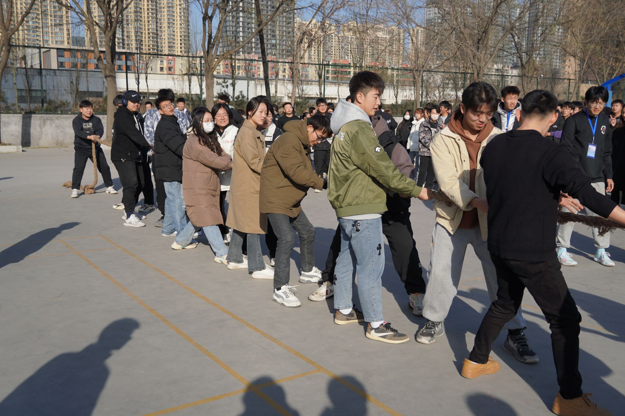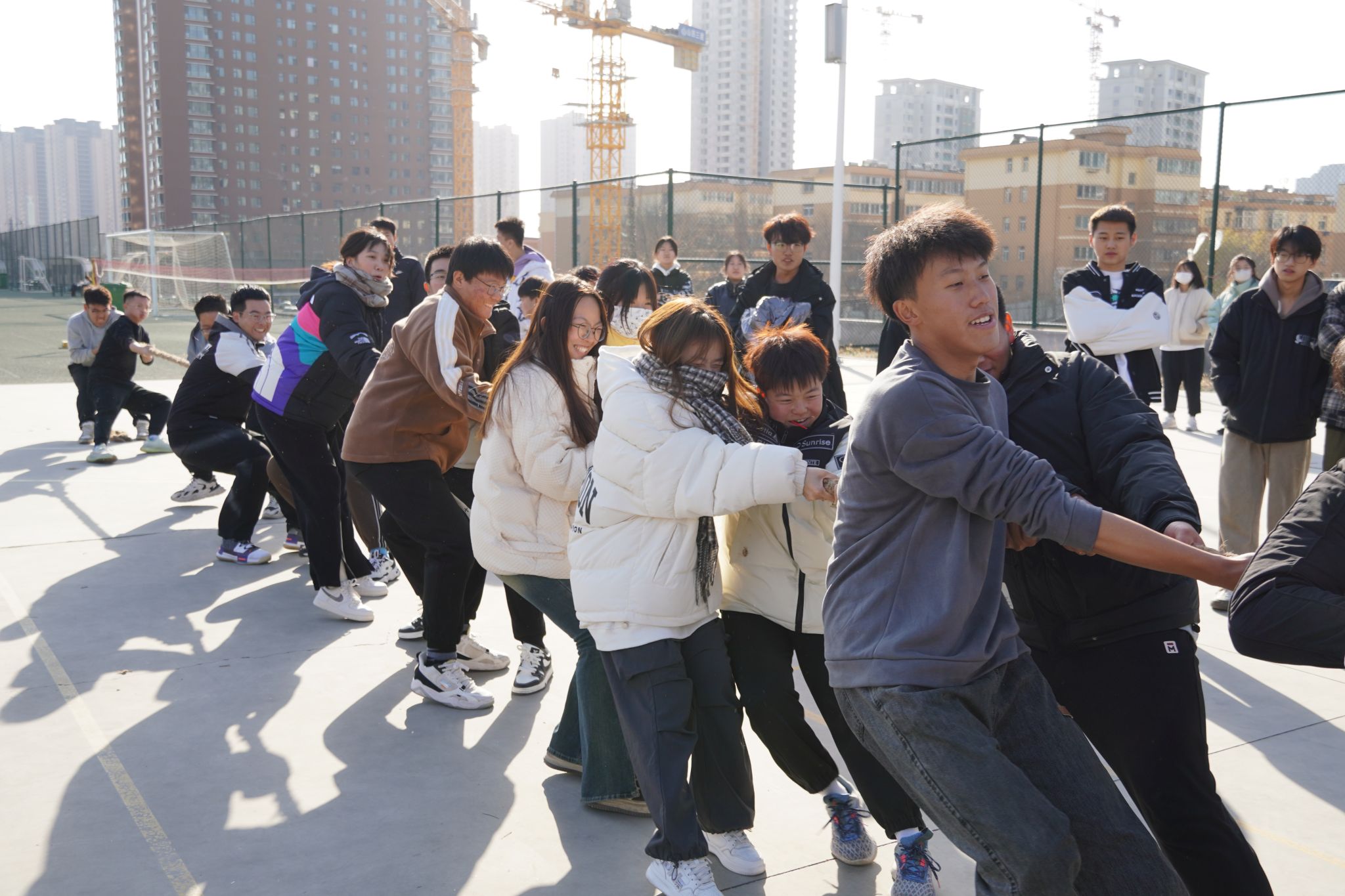 本次比赛以班级为单位参加,实行淘汰制晋级方式,抽签决定参赛顺序,决出前五名,每班抽取10名男生5名女生。伴随着裁判一声哨响,拔河比赛正式拉开序幕。同学们紧握长绳,鼓足了劲、涨红了脸,拼命往后拉,斗志昂扬、全力以赴。场外观众加油声和鼓舞声汇成了一股暖流,现场气氛热烈而友好,给萧萧冬日增添了一抹别样的色彩。