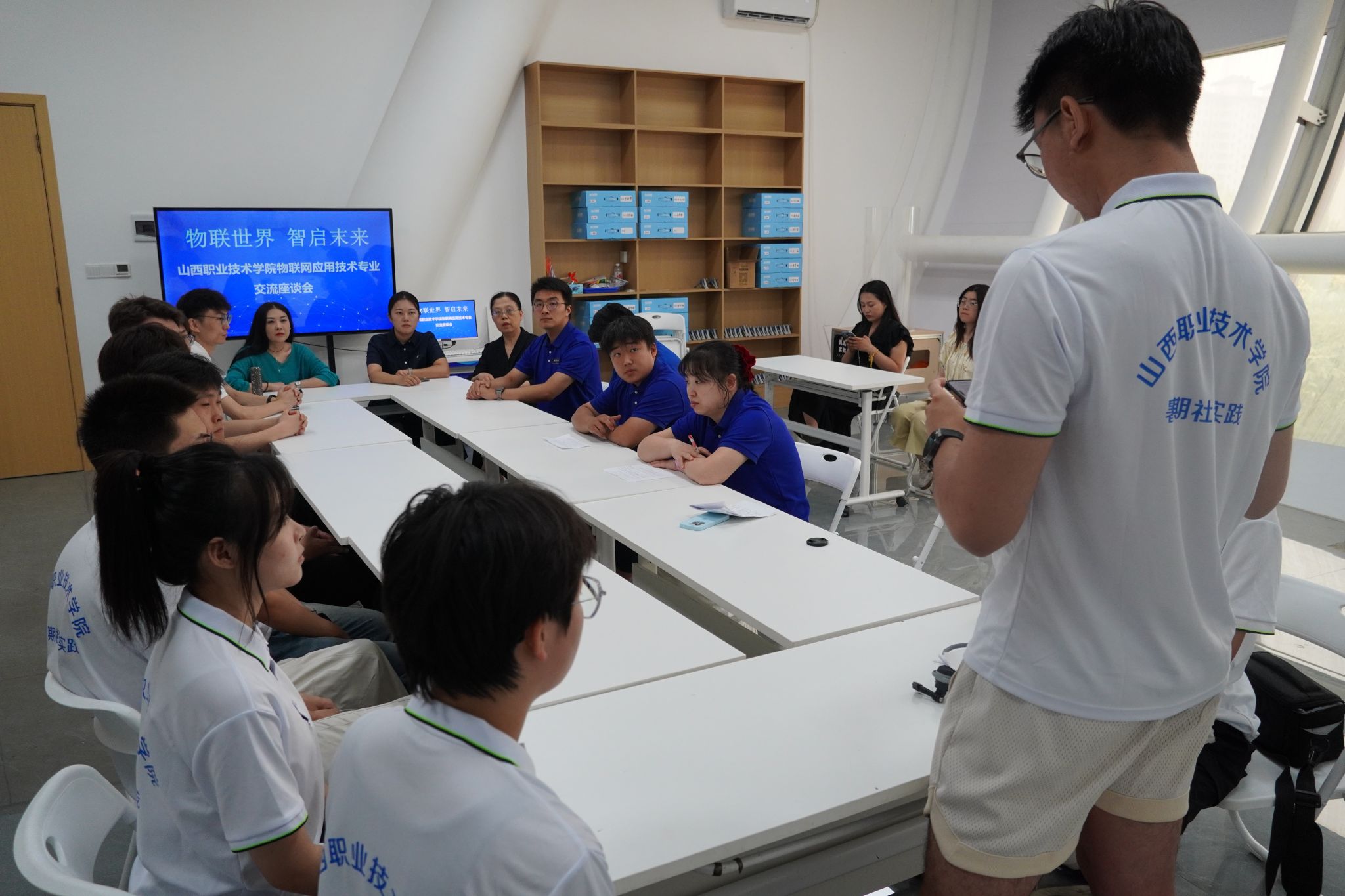 6月27日上午,为深化实践内涵,推动理论知识与前沿科技深度融合,学生们前往曲沃未来科技馆,开展学术交流与研学活动。在科技馆的展厅内,学生们与馆方教师围坐在一起展开研讨,结合自身实践经历踊跃分享:详细讲述了在景区利用自制物联网监测装置进行客流量监测的过程,以感应式路灯、联网智能快递柜等智能设备为实例,深入剖析了物联网技术的应用原理。馆方教师对同学们的实践成果与思考表示肯定,并与学生们围绕相关技术开展了深入交流。