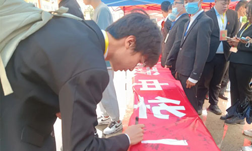 同学们积极响应,纷纷在横幅上签下自己的名字。本次活动有效的激起了同学们振兴中华的信念,也增强了同学们的爱国主义精神。
