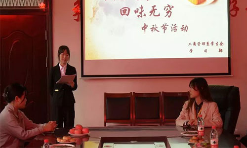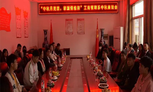 中秋佳节来临之际,工商管理系举办师生中秋座谈会,工商管理系党总支副书记姜晓红、团总支书记陈静、辅导员陈静代表系里给学生送上中秋祝福,与假期留校学生共度中秋佳节。