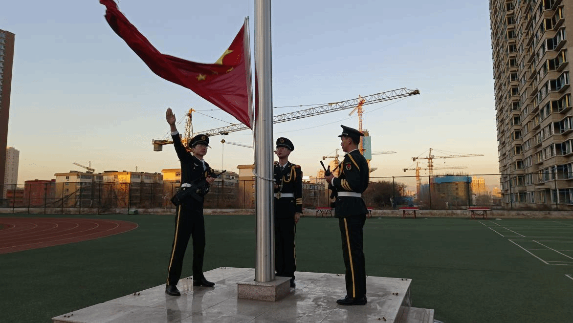 早晨7点20,国旗护卫队步伐铿锵护送五星红旗走上国旗台。伴随着雄壮的《义勇军进行曲》,鲜艳的五星红旗冉冉升起,现场全体人员肃立致敬。一双双坚定的眼神,彰显了工商管理系师生的决心与意志。