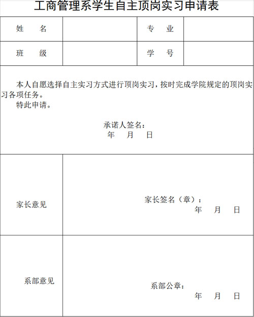 | 注:要求实习岗位与所学专业相符,实习周期须满六个月,变更实习单位申请表及相关手续交辅导员,经系部审核通过后,即刻上岗。