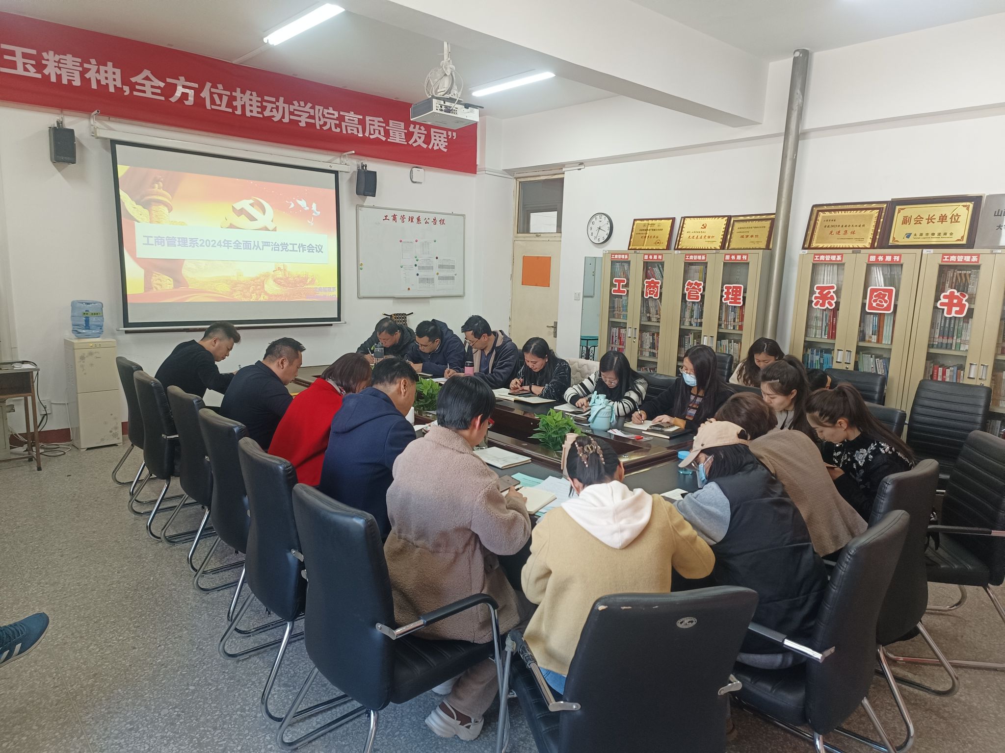 3月19日下午,工商管理系在系部会议室召开了2024年全面从严治党工作会议,系领导班子及全体党员、教师参加会议,会议由系党总支副书记姜晓红同志主持。