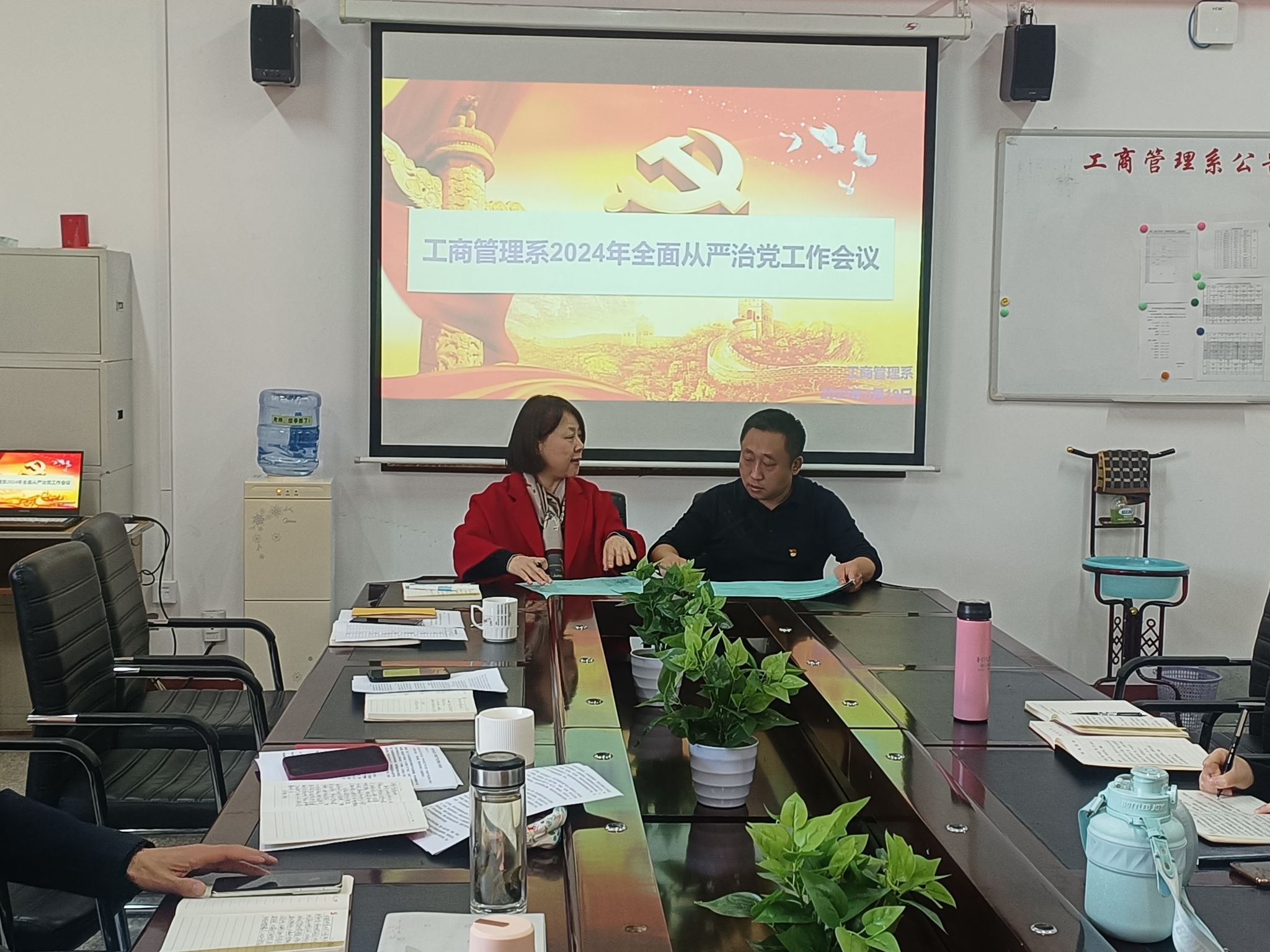 系党副总支书记姜晓红同志作工商管理系全面从严治党工作报告,回顾总结了2023年全面从严治党工作开展情况,并就抓好2024年全面从严治党工作进行了详细的安排部署。