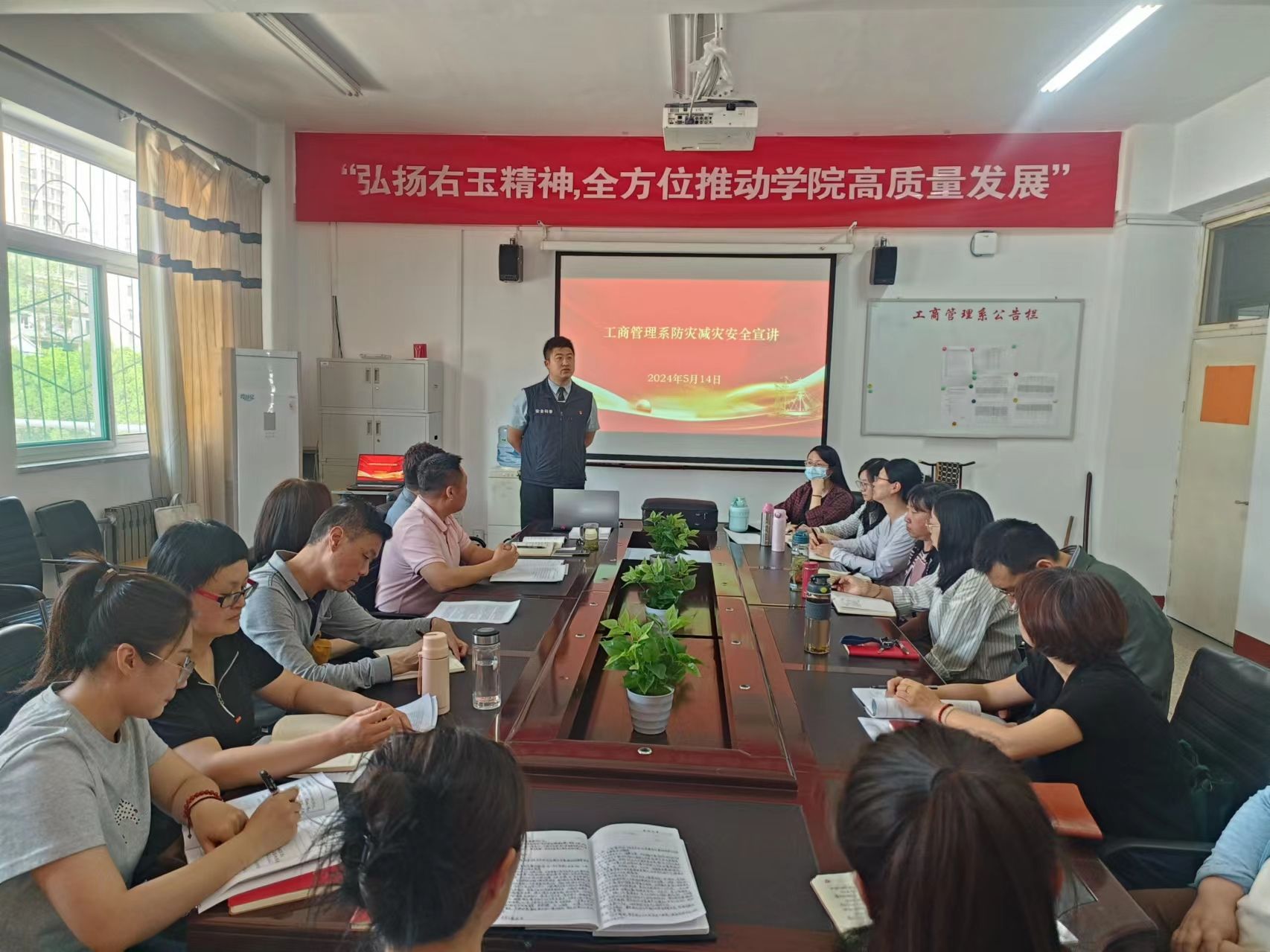 为提升教职工安全意识,切实提高正确处理火灾等突发事件的应急能力,5月14日下午,工商管理系邀请到山西消防协会安全科普中心副主任陈冠霖教官为我系教职工进行了一场防灾减灾安全讲座.