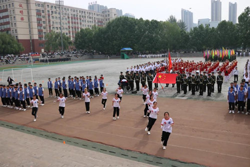全体师生起立,奏唱国歌
