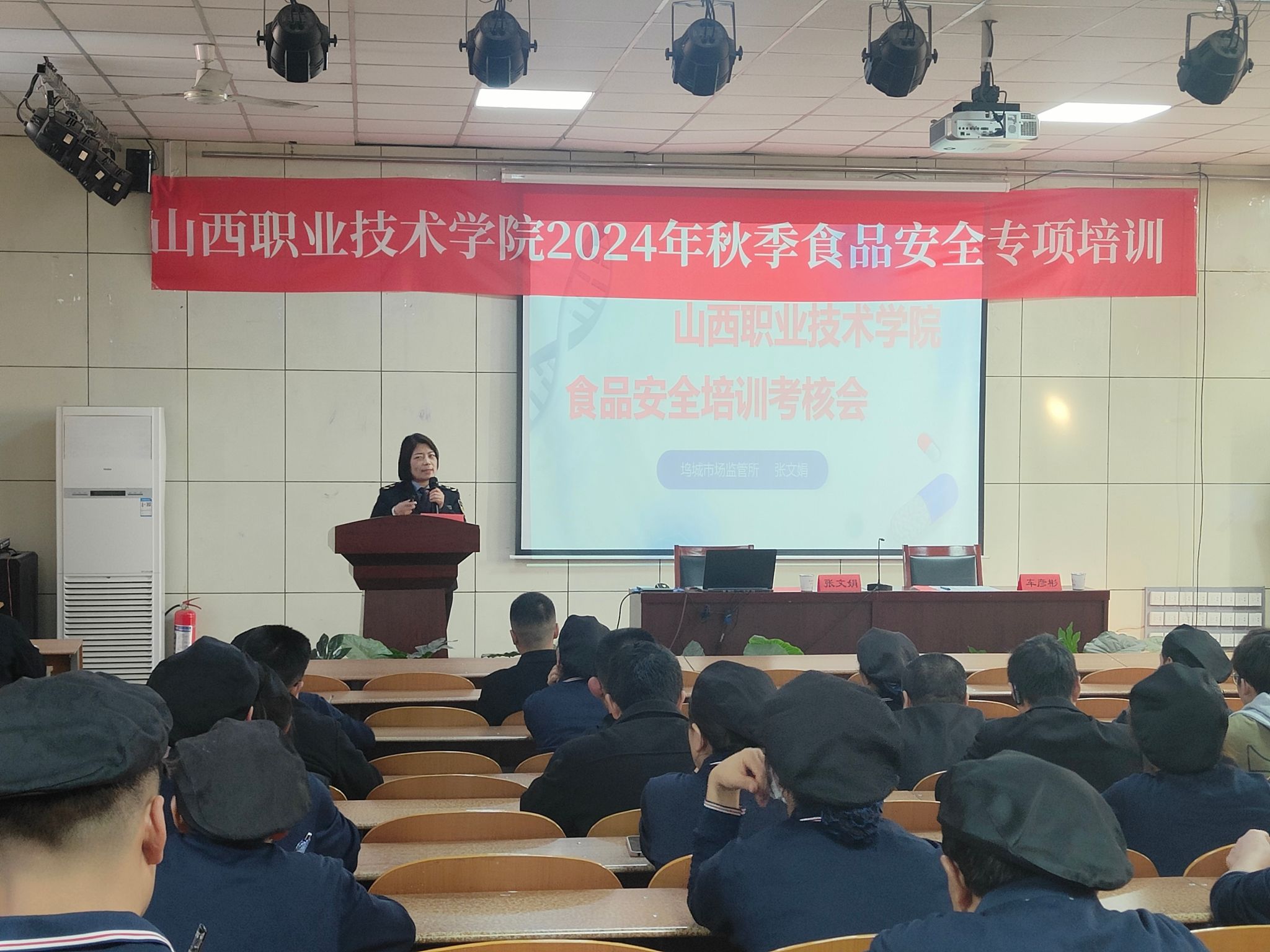 学院邀请太原市小店区坞城市场监督管理所所长张文娟进行了食品安全知识宣讲,张所长从餐饮服务通用卫生规范及案例分析方面形象具体的讲述了相关食品安全管理责任和法律依据,在食品分类、餐具抽检、食品原料抽检、设施设备维护、人员管理、后厨环境、生熟存放等食品安全工作关键环节方面进行了专业知识分享,同时对日常检查过程中存在的问题进行了汇总说明,并提出了整改措施。