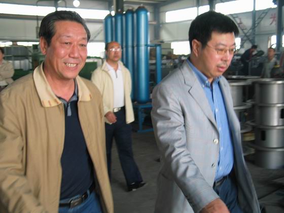 崔毅书记(左)陪同吕双牛处长参观实训基地