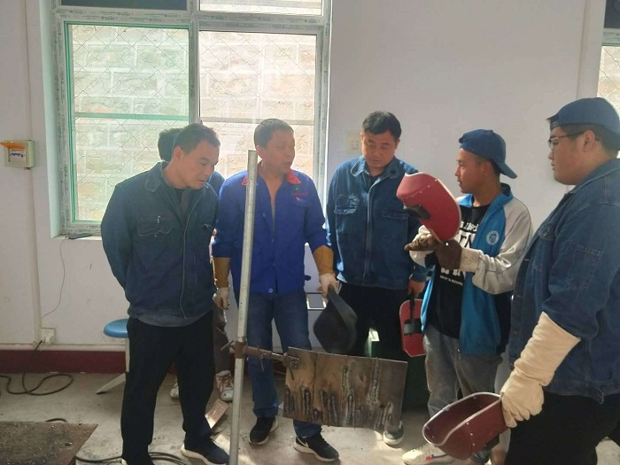开云官网机械系李文志老师5月18日—22日对吉县职业中学杨杰、冯康祺、张晋文三位专业教师及高二年级79班的30名学生进行了24课时的手工电弧焊平板对接单面焊双面成型、立板对接单面焊双面成型和管对接全位置焊的要领讲解示范,并逐个辅导实际操作。经过一周的培训,吉县职高的三位老师能够带领学生利用现场的有限材料,基本掌握了平焊和立焊的操作手法。
