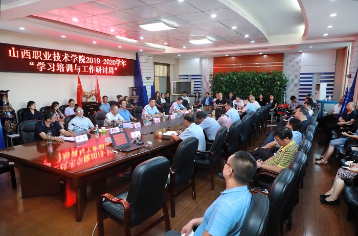 “工作研讨”会上,秦院长指出,教师是我们办学治校的关键,各个部门要抓住人才这一核心要素;我们要崇尚实干精神,从全局谋事,重点回答好这个部门这个学期干什么、怎么干,把握重点,突破难点,对标对表,找准差距。秦院长强调,形势逼人、挑战逼人、使命逼人,容不得半点懈怠,我们要明确布局、明确思路、重点推进,在“五条工作主线”“十大发展任务”落实、落地、落细、落小上下工夫;要以问题为导向,以目标为牵引,聚心合力,整合优势资源,脚踏实地,实现一个又一个既定目标;要加强责任目标考核,要有量化的指标;要与时俱进推动理论创新,并在实践中不断完善;相关处室、各条主线要研究,哪些指标可以量化为数字;要有忧患意识,鼓足干劲,挖潜力、争优势,归纳总结出更好的办学模式,用实实在在的成果向新中国成立70周年献礼。