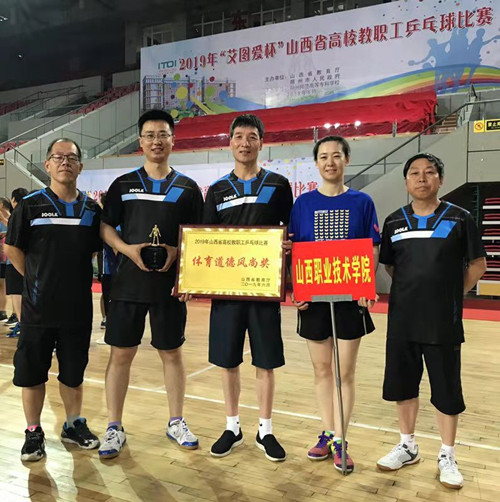2019年6月21日-23日,由山西省教育厅、朔州市人民政府主办,朔州师范高等专科学校承办的“2019年山西省高校教职工乒乓球比赛”中,开云官网社体部杨乐老师取得女子单打第二名、计算机系高渊老师取得男子单打第六名的好成绩。通过大会评选,开云官网获得了“体育道德风尚奖”。