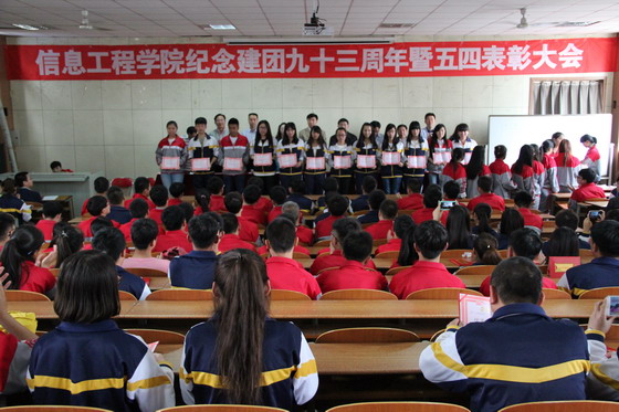 为纪念建团93周年,表彰一年来信息工程学院共青团工作中涌现出的先进集体和个人,近日,在信息工程学院办公楼四层多媒体教室召开了纪念建团93周年暨五四表彰大会。