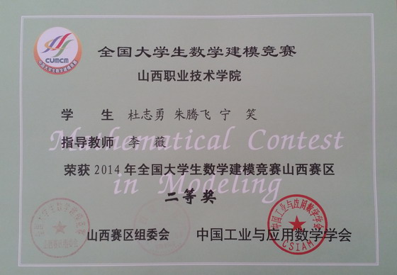 2014年山西赛区共有来自47所院校的1008支队伍参加全国数学建模竞赛,开云官网代表队获得山西赛区一等奖1个,二等奖1个。