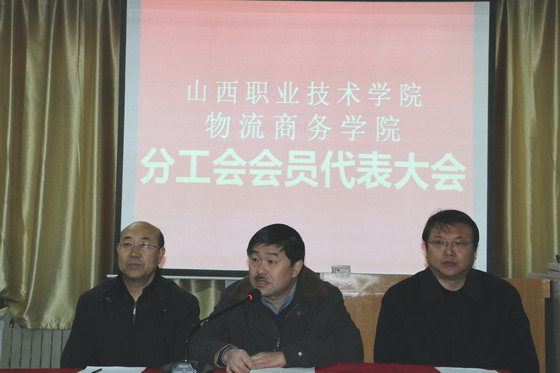 大会在庄严的国歌声中拉开了序幕。物流商务学院党委书记李军同志致词。物院分工会筹备组组长张建蒙同志详细地介绍了分工会成立过程和候选人产生情况。会议由物流商务学院张振平主持。