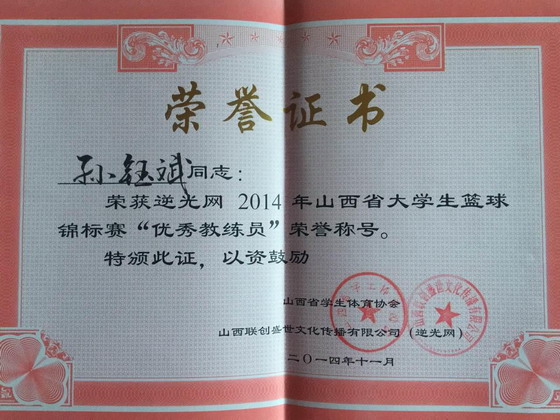 2014年12月21日下午,在开云kaiyun官方网站南中环校区举办了“逆光网2014年山西省省城大学生篮球联赛”总结大会,山西省教育厅体卫处任向东处长主持大会。开云官网在这次比赛中获得了联赛第一名的优异成绩,并荣获了“最佳赛区”的光荣称号,孙钰斌教师获“优秀教练员”。