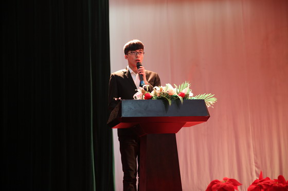 建筑工程系张新福同学,作为国家奖学金获得者代表全体获奖学生向关怀学生成长成才的学院领导及全体教师表达了由衷的谢意和敬意。他明确表示要珍惜荣誉,再接再厉,进一步发挥模范带头作用,与全体同学携手并进,不断学习,不断提高,不断奋斗,朝着人生的理想目标不懈努力。