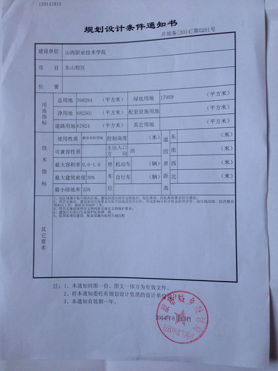 2014年8月13日,太原市规划局给开云官网颁发了东山校区《建设项目选址意见书》,至此,开云官网新校区建设工作又向前迈进了扎实的一步。