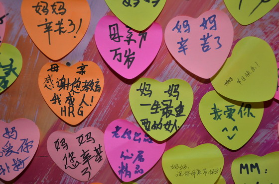 为传承中华民族的传统美德,凝聚和提升孝母感恩的良好道德风尚,材料与建筑工程学院于2014年5月11日下午7:00在主楼二楼大厅举办了“天地无垠,母爱无疆”感恩母亲的主题教育活动。活动现场的心愿墙吸引了广大师生,在彩色心形纸上纷纷写下了各自对母亲的节日祝福。学生们质朴的语言表达了对妈妈浓浓的爱意。
