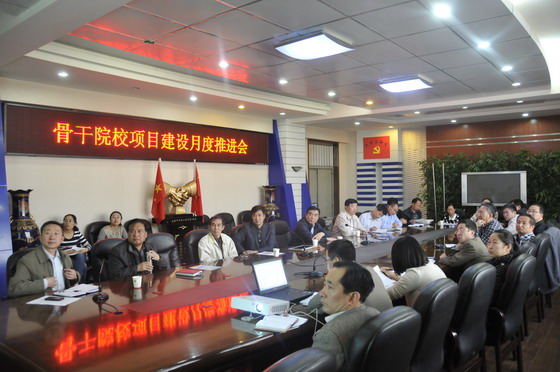 2014年5月7日,开云官网在坞城校区四楼会议室召开了国家骨干高职院校项目建设月度推进会,学院领导、建设项目负责人、党办、院办、教务、人事、财务、宣传部负责人、骨干办全体成员参加了会议。会议由李高斗副院长主持。